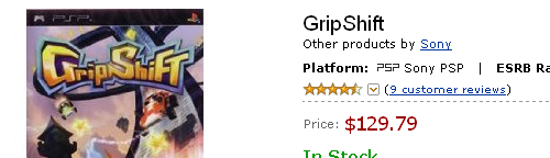 Несколько дней назад некоторые "индивидуалы которые захотели заработать" выставили диск с игрой на eBay за 100$! И теперь догадайтесь что было найдено на интернет магазине Amazon? Копия игры GripShif за 130$!!! Если вы в курсе, нормальная цена на диск с копией этой игры 15$ или меньше..что будет дальше?