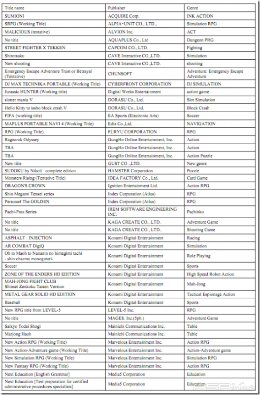 Следуя примеру компании Nintendo, которая составила список запланированных игр для 3DS, компания Sony также показала свой список игр, которые выйдут для PS Vita.