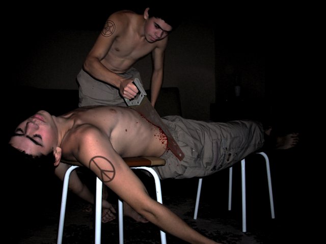 димаflash, Сверху кровь убери, ибо там пила только начинает соприкасаться с телом -_-