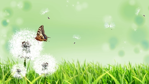 Обои для PSP » 3D » Бабочка на одуванчике