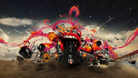 Обои для PSP » 3D » Ленты и нотки