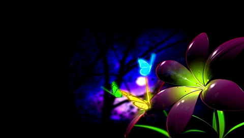 Обои для PSP » 3D » Цветок и бабочки