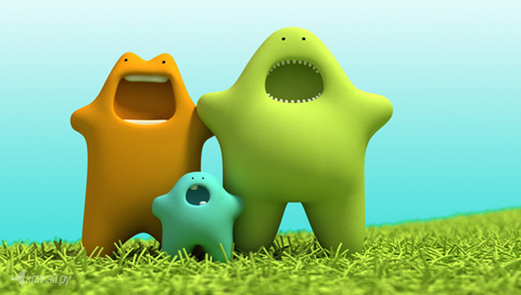 Обои для PSP » 3D » Семья весёлых монстров