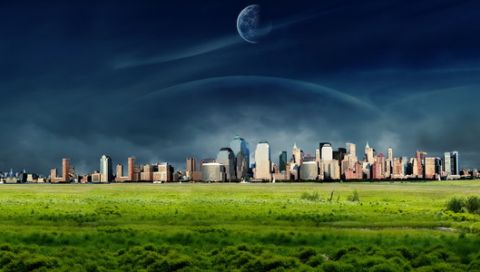 Обои для PSP » 3D » Город рядом с травой