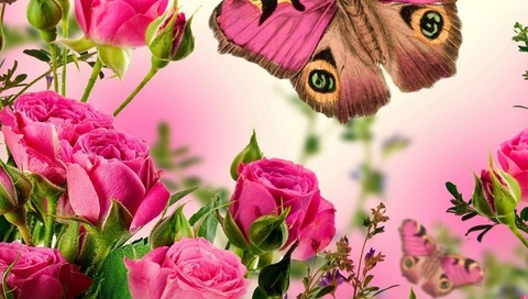 Бабочка и розы