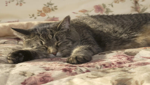 Кошка лежит