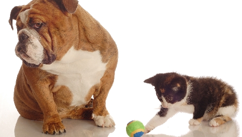 Бульдог и котенок