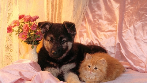 Котенок со щенком