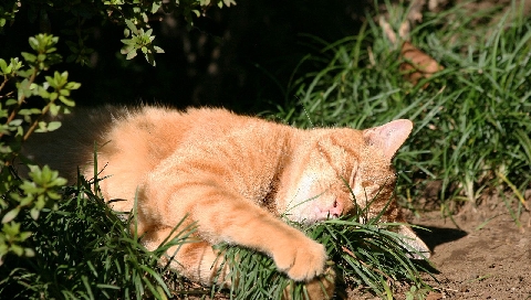 Обои для PSP » Животные  »  Кошки » Кошка играет с травкой