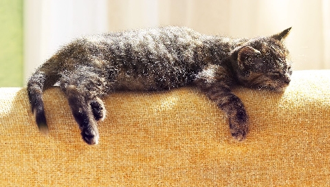 Обои для PSP » Животные  »  Кошки » Котенок лежит на диване