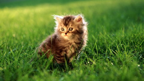 Обои для PSP » Животные  »  Кошки » Один котёнок в травке