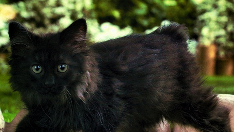 Пушистый чёрный кот