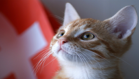 Котенок на фоне флага