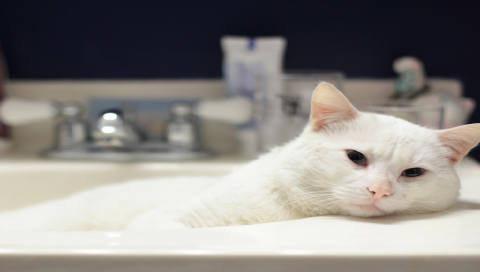 Название: Белый кот лежит в раковине