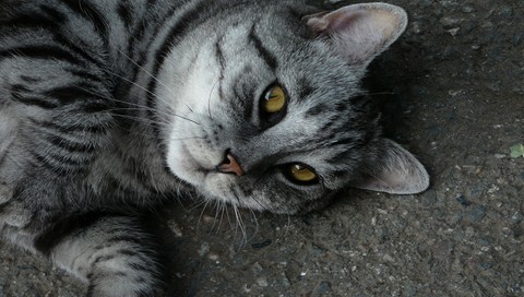 Обои для PSP » Животные  »  Кошки » Кошка лежит на асфальте