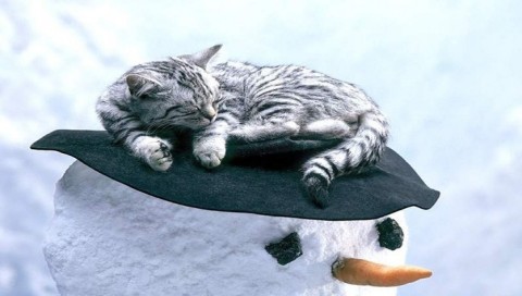 Кот на снеговике