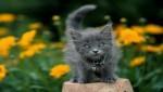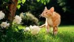 Котёнок возле цветов