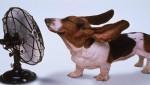 Собака стоит перед вентилятором