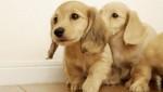 Два щенка смотрят вправо