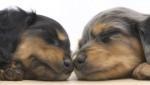Два щенка спят нос к носу