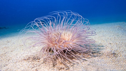Обои для PSP » Животные  »  Обитатели моря » Медуза под водой на песке