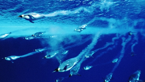 Обои для PSP » Животные  »  Обитатели моря » Стая пингвинов