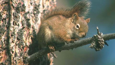 Обои для PSP » Животные  »  Белки » Белка с сухой шишкой