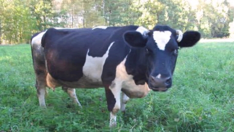 Корова смотрит в камеру