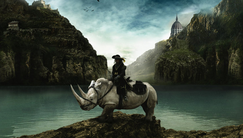 Обои для PSP » Животные  »  Носороги » Фантастический носорог с наездником