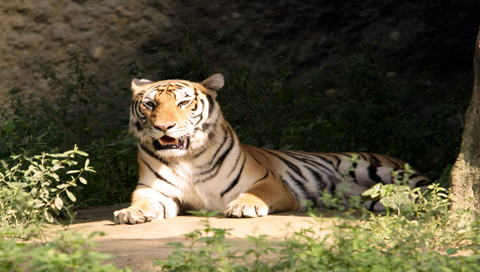 Лежащий под солнцем тигр