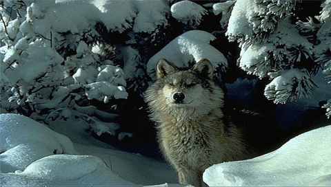 Обои для PSP » Животные  »  Волки » Волк за деревьями
