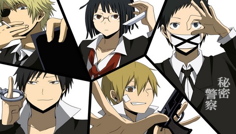 Обои для PSP » Аниме  »  Durarara!! » Сидзуо, Анри, Микадо, Кида и Идзая