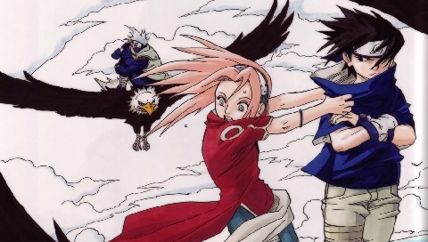 Обои для PSP » Аниме  »  Naruto » Саске Сакура и Какаши