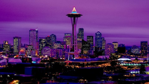 Здания на красивом закате