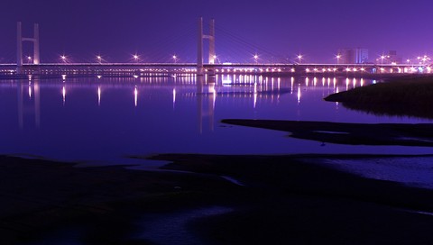 Мост на фоне фиолетового неба