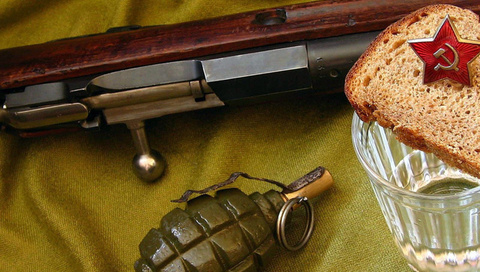 Винтовка, граната, стакан, хлеб, орден