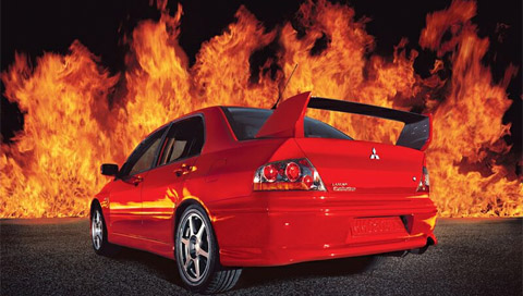 Обои для PSP » Автомобили  »  Mitsubishi » Mitsubitsu на фоне пламеня