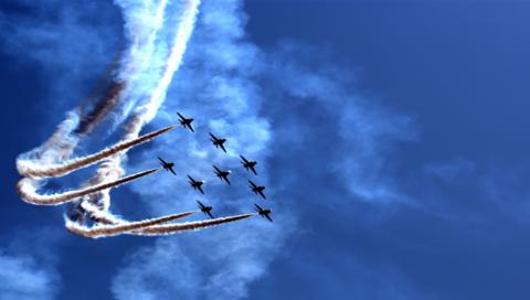 Девять самолётов в небе