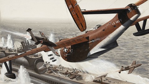 Название: Самолёт стреляет в корабль