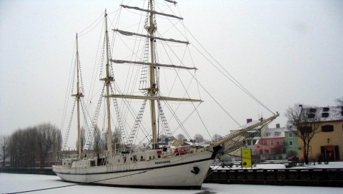 Корабль с опущенными парусами