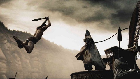 Спартанец напрыгивает на перса