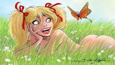 Милое творение известного Пин - Апера,а в первую очередь художника Дина Игла - малышка Мэнди, которая не раз становилась на обложку журнала Playboy, не уступая другим Пин - ап героиням.