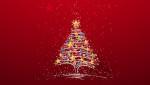 Украшенная ёлка на красном фоне