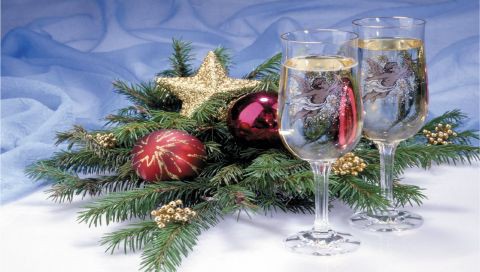 Новогодние игрушки и два бакала шампанского