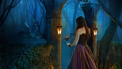 Обои для PSP » Фэнтези » Девушка на входе в тайнественый дом