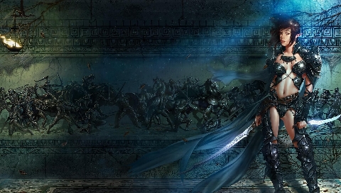 Обои для PSP » Фэнтези » Девушка с кинжалами в руках