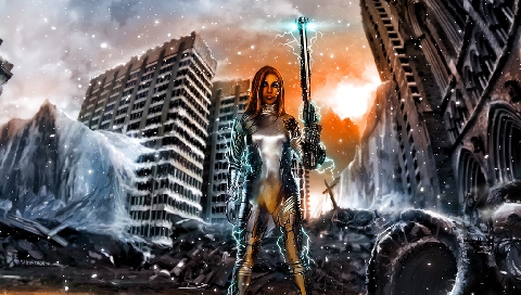 Обои для PSP » Фэнтези » Девушка и разрушенный город