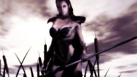 Обои для PSP » Фэнтези » Девушка с копьем в камышах