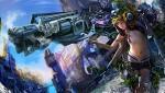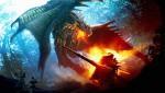 Девушка  с копьём летит на монстра