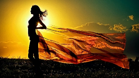 Обои для PSP » Девушки » Девушка на закате солнца